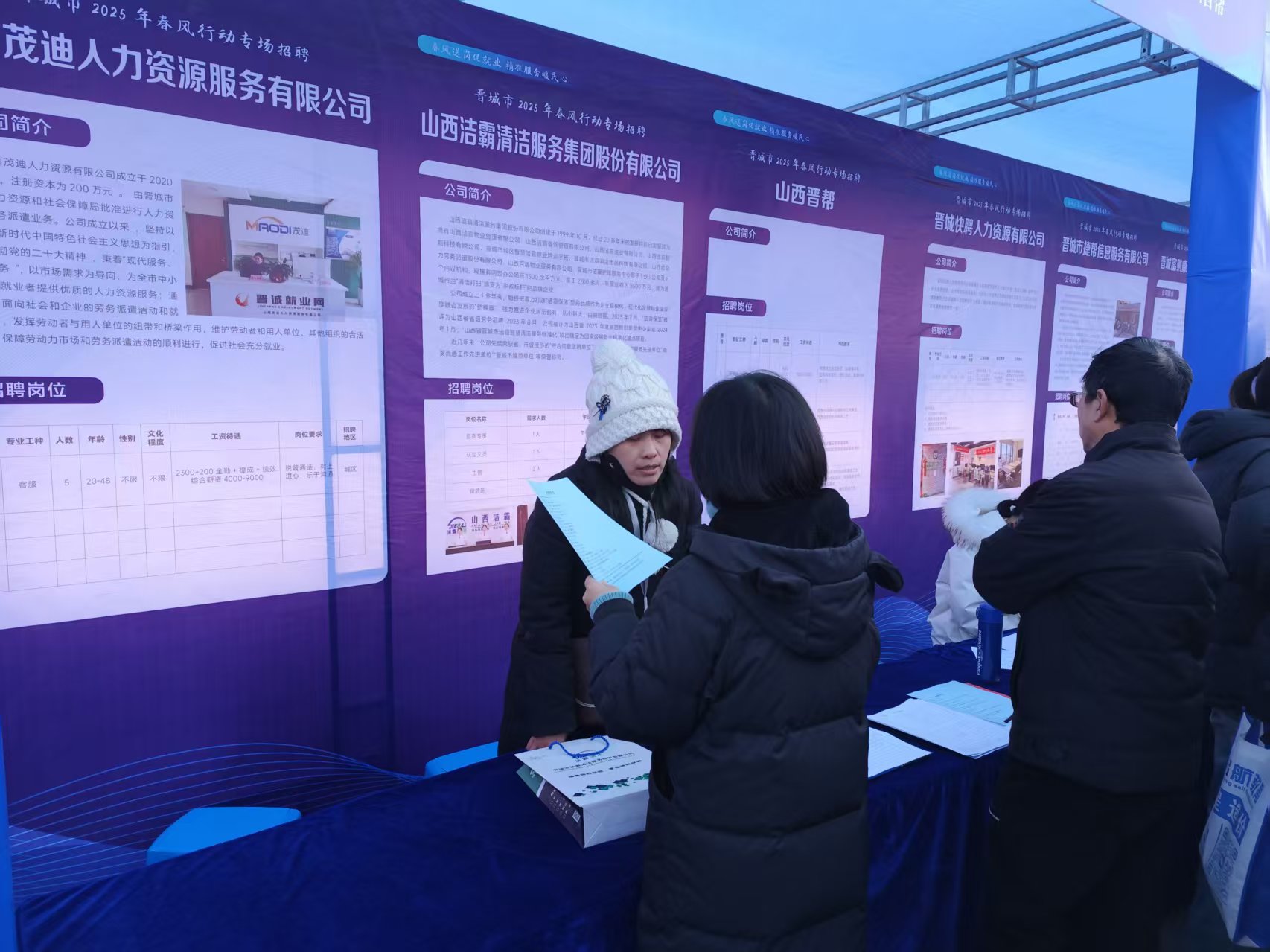 2月9日,“春風(fēng)送崗促就業(yè) 精準(zhǔn)服務(wù)暖民心”晉城市2025年春風(fēng)行動專場招聘活動在陽電體育場舉行。我公司人力資源部參加活動。